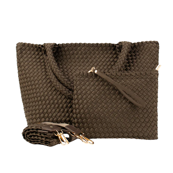 The Edition bag made by Isle of My comes with 2 detachable straps. The signature woven strap is wide, flexible and contoured for a comfortable all day carry. The nylon strap is extendable for a crossbody carry that 'fits all'. And, the integrated double strap fits comfortably over the shoulder.